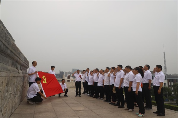 在宿北大戰(zhàn)紀(jì)念館內(nèi),觀看了宿遷地區(qū)革命斗爭(zhēng)史料,聆聽(tīng)了講解員講解的戰(zhàn)斗英雄的故事,在一組組歷史照片和實(shí)物前大家凝神注目,回顧著陳毅等老一輩革命家運(yùn)籌帷幄、決勝千里的豪放氣質(zhì),感受著當(dāng)年激戰(zhàn)七天七夜的壯烈場(chǎng)景。隨后,前往宿北大戰(zhàn)馬陵山革命烈士紀(jì)念塔,在鮮艷的黨旗下,黨員們莊嚴(yán)宣誓,重溫了入黨誓詞。