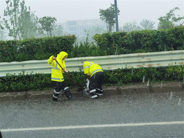 降雨期間,公司嚴格按照汛期工作要求,組織專項隊伍,開展各項處置工作,第一時間對管養的國省干線道路、寧連高速、東疏港高速養護沿線進行巡視,對積水道路排水口進行清理,確保排水通暢。同時,及時掌握綜合客運樞紐、華聯地下通道、石梁河景區等物業項目汛情,迅速開展排澇工作。此次防汛搶險共出動橙色突擊隊員106人次,應急車輛11臺,處置路面積水23處,清理倒伏樹木19棵,清理路面障礙物31余處。