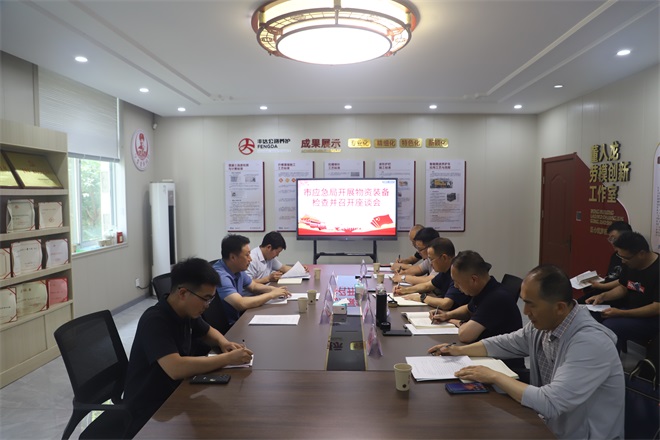錢成勇一行對應急處置中心的應急救災物資裝備管理情況進行檢查,根據物資庫租用合同,主要查看是否落實專人看管物資庫、庫內物資日常管理情況、看管人員是否熟悉物資庫信息化系統操作及介紹等情況。隨后檢查組召開物資管理座談會,聽取豐達公司關于物資庫交接后的運行情況、主要問題與困難、物資庫使用效能提升措施,以及下一步應急演練計劃的專題匯報。