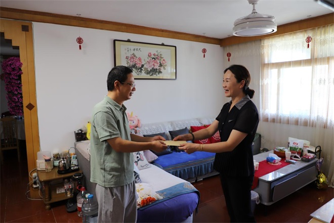 在公司黨總支紀(jì)檢委員、工會主席孫婷同志的帶領(lǐng)下,慰問小組深入困難職工家中,與他們面對面交流,詳細(xì)了解家庭生活、健康狀況等情況,認(rèn)真傾聽他們的實際需求和困難,鼓勵他們堅定信心、樂觀生活。同時,為困難職工家庭送上了月餅、米、面、油等節(jié)日慰問品及慰問金,把公司的關(guān)愛送到職工心坎上。一句句暖心話語,一份份沉甸甸的慰問品,傳遞著豐達(dá)公司“以人為本”的公司溫度,也增強了職工對公司的認(rèn)同感和歸屬感。