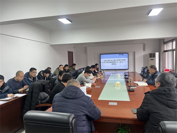 為進一步加強豐達公司工程項目的管理,規(guī)范工程變更行為, 合理控制工程造價,促進工程變更工作標(biāo)準(zhǔn)化、規(guī)范化和程序化,根據(jù)國家相關(guān)法律法規(guī),并結(jié)合公司實際情況,特制定《連云港豐達公路養(yǎng)護有限公司工程變更管理辦法(試行)》,并在公司內(nèi)部進行宣貫學(xué)習(xí),公司總經(jīng)理馬軻、各分子公司領(lǐng)導(dǎo)班子成員及相關(guān)工作人員參加會議。